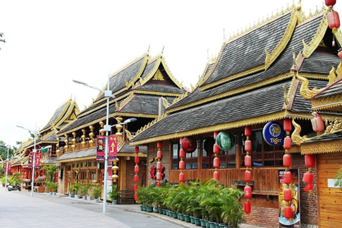 (旅游對西雙版納經(jīng)濟(jì)的拉動作用日益突出,“傣江南”酒吧街區(qū))