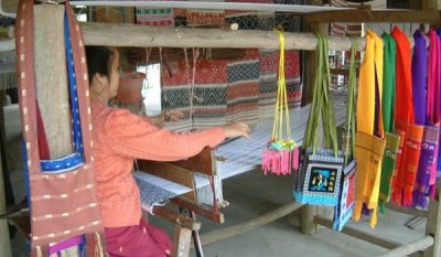 通巴即挎包,以各色手線、棉線織成。包長30余厘米,寬20余厘米。包的正面、背面及側面織有花卉鳥獸或幾何圖案,包底部綴有彩穗,色澤鮮艷,做工精細,包形小巧,民族特點鮮明,